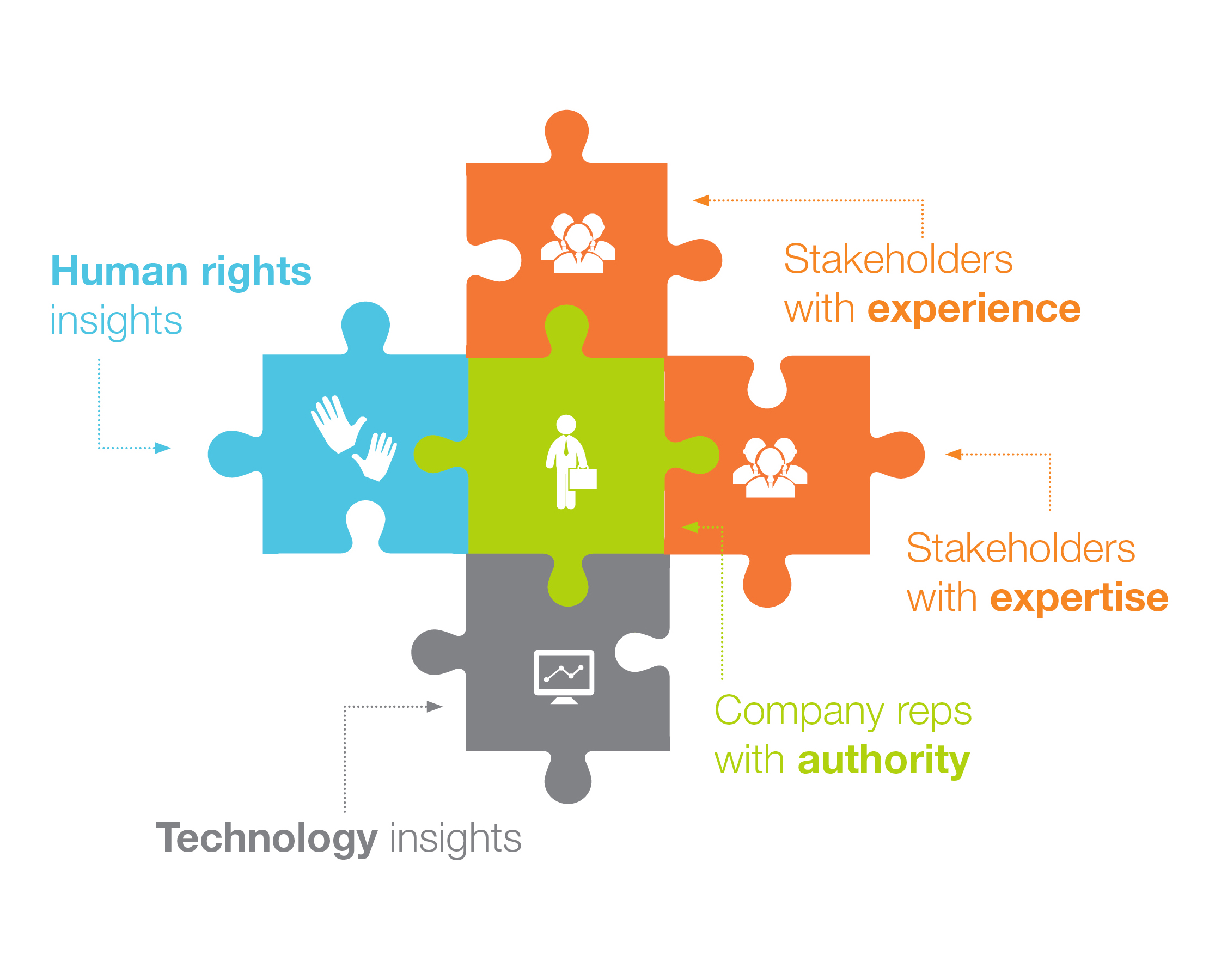 Ultimately, this “and, not or” model provides information and communications technology (ICT) companies with a broad range of information and experiences, from both rights holders and intermediary stakeholders, which helps companies make informed decisions.